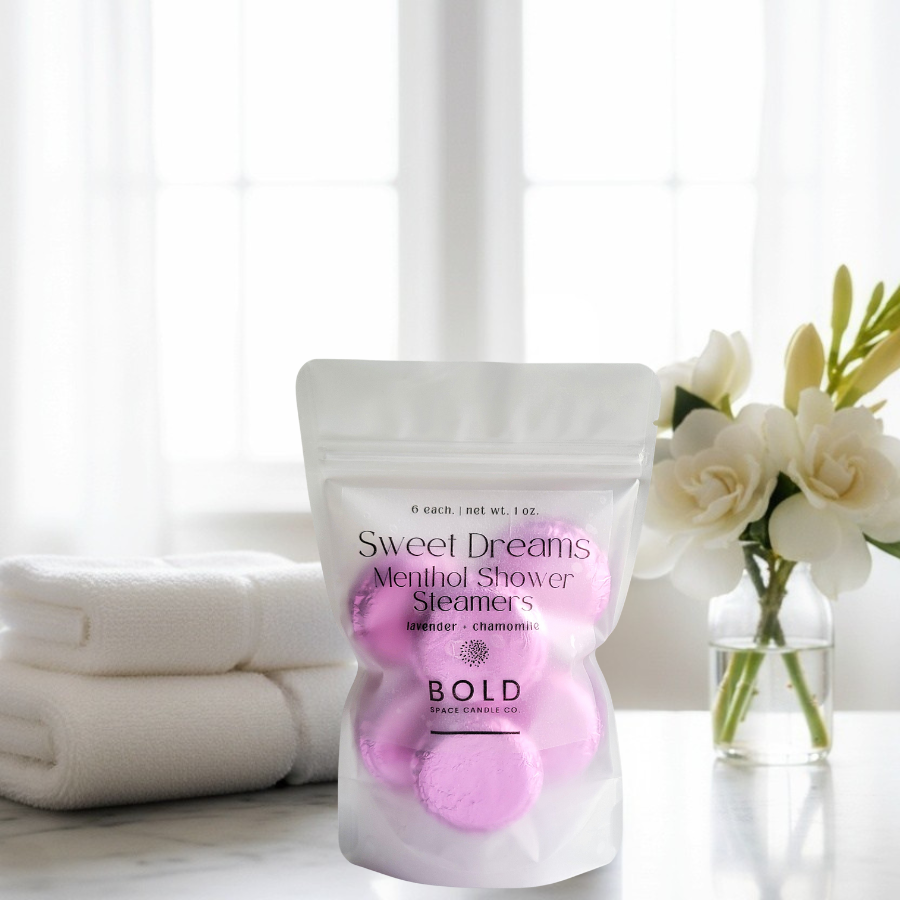 Bold Space creates grounding home and body rituals — candles, shower steamers, sprays, and mists — designed to help your nervous system slow down and your body reset.