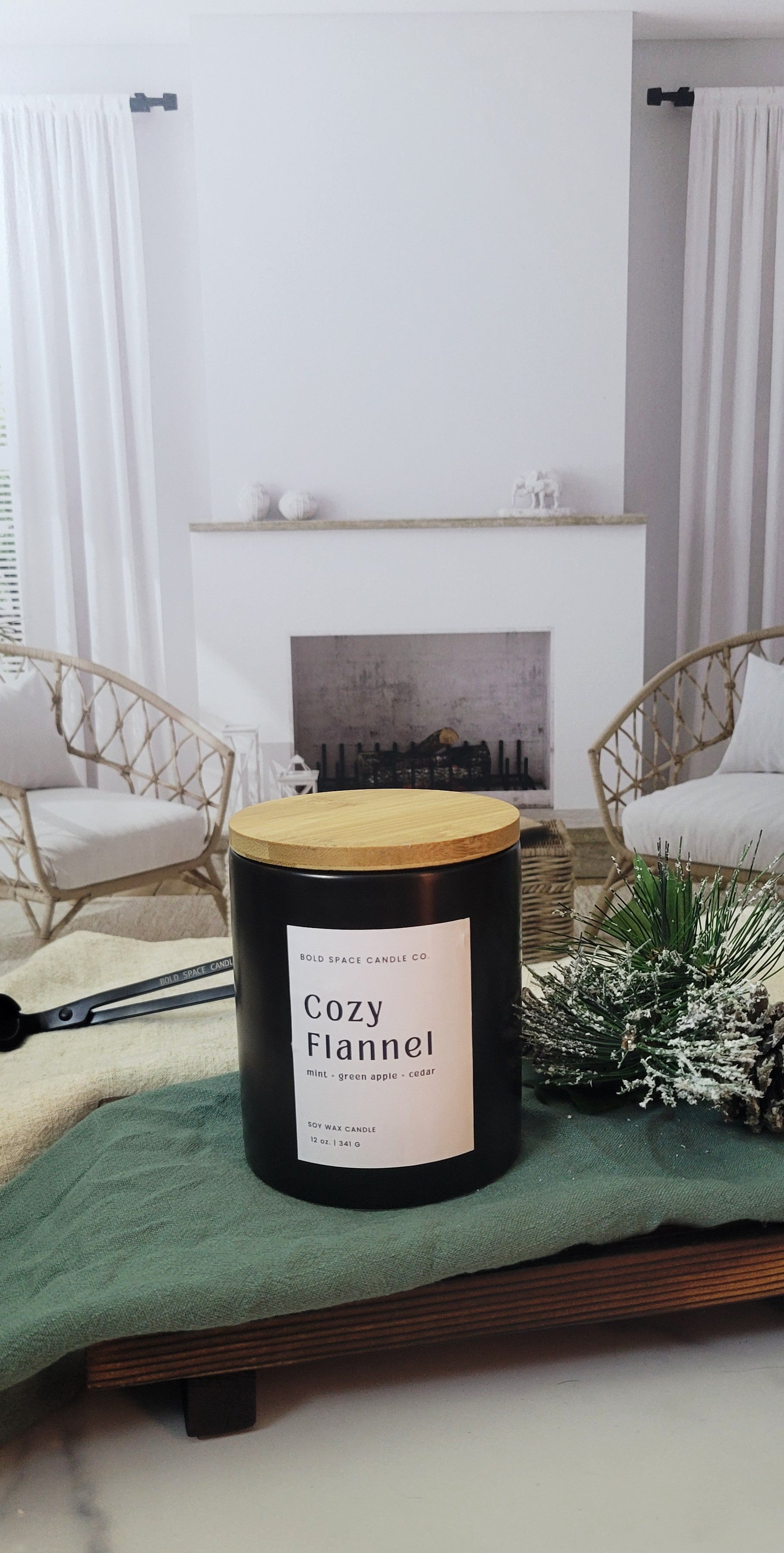 Cozy Flannel - Green apple + Cedar + Citrus + Fresh Mint- 12 oz. Candle