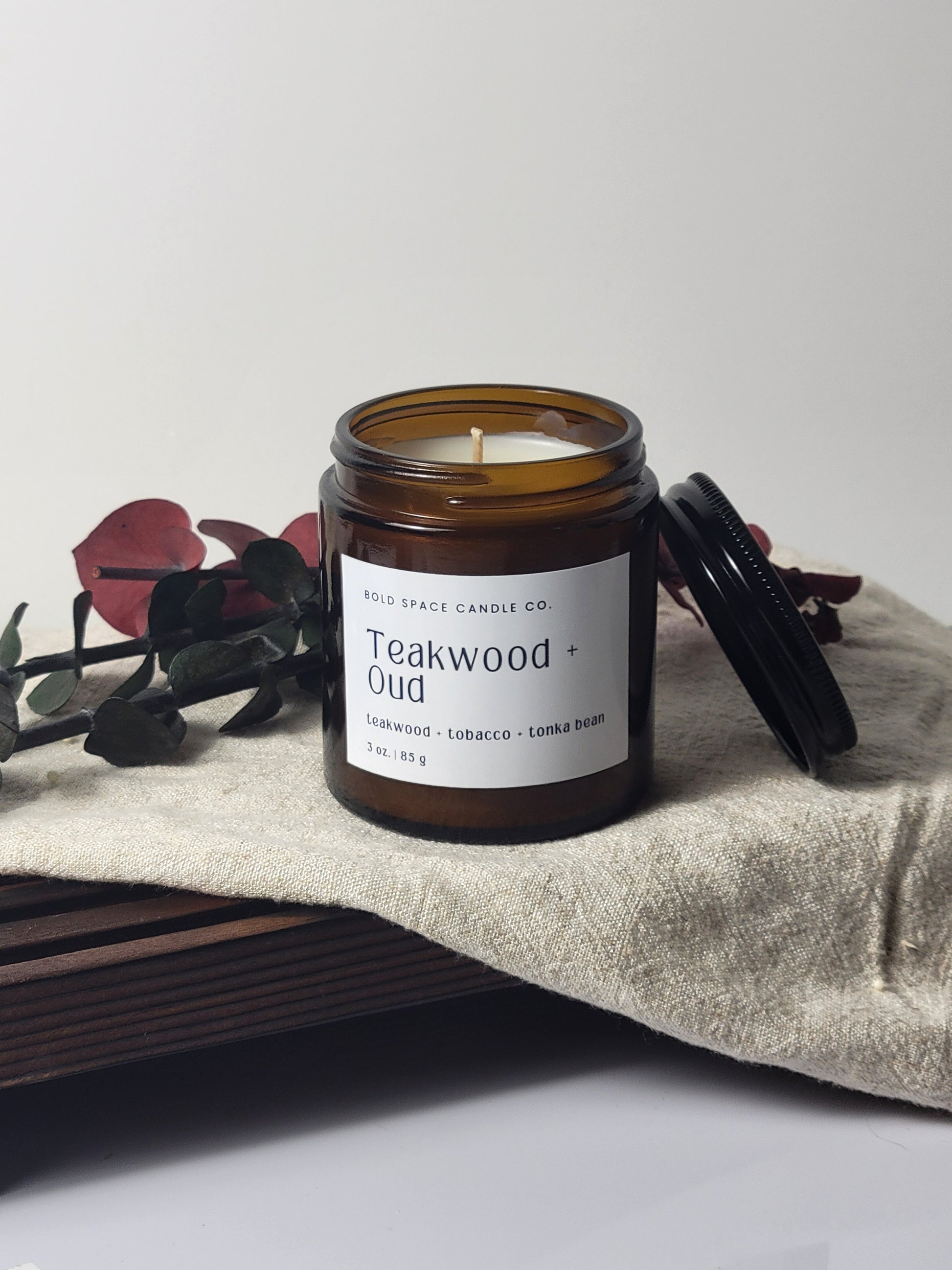 Teakwood & Tonka- Mahagony + Tonka Bean + Oud - 3 oz. amber jar